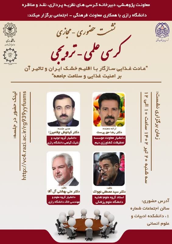 کرسی علمی-ترویجی "عادت غذایی سازگار با اقلیم خشک ایران و تاثیر آن بر امنیت غذایی و سلامت جامعه"